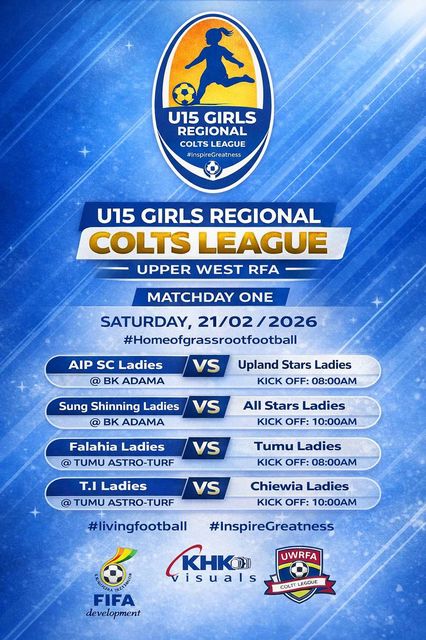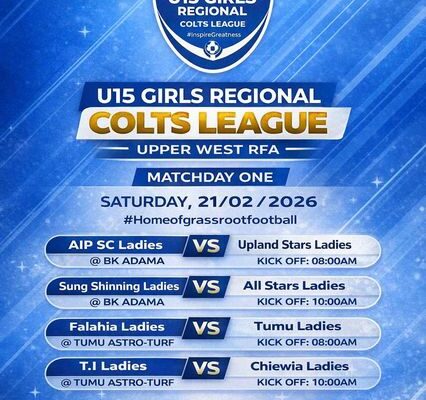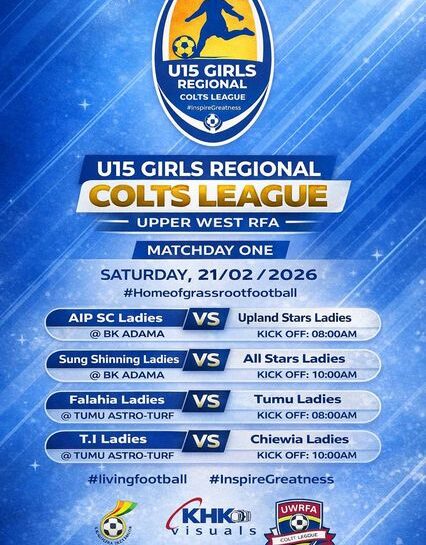Excitement is building across the Upper West Region as the U15 Girls Regional Colts League officially gets underway this Saturday, February 21, 2026. The opening round of matches is expected to bring together young talents, coaches, parents and football lovers for a memorable start to the season. Matchday One will be played at two centres,…