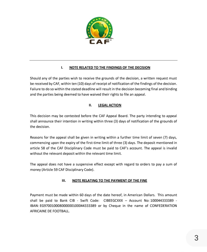 The fine follows an investigation by CAF into the abrupt cancellation of the match between the two countries.