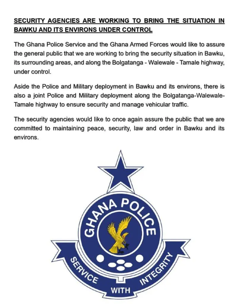 The Ghana Police Service and the Ghana Armed Forces have assured the public of their commitment to restoring peace and stability in Bawku, its surrounding areas, and along the Bolgatanga-Walewale-Tamale highway.