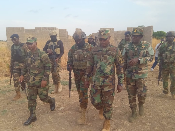 As part of the visit, Major General Gbetanu, accompanied by the General Officer Commanding Northern Command, Brigadier General Frank Nartey Tei and the Commander Rear of the 11 Mechanised Infantry Battalion, Lieutenant Colonel Kakra Sasu-Antwi, visited an outpost in Kpalore where a military officer was recently killed.